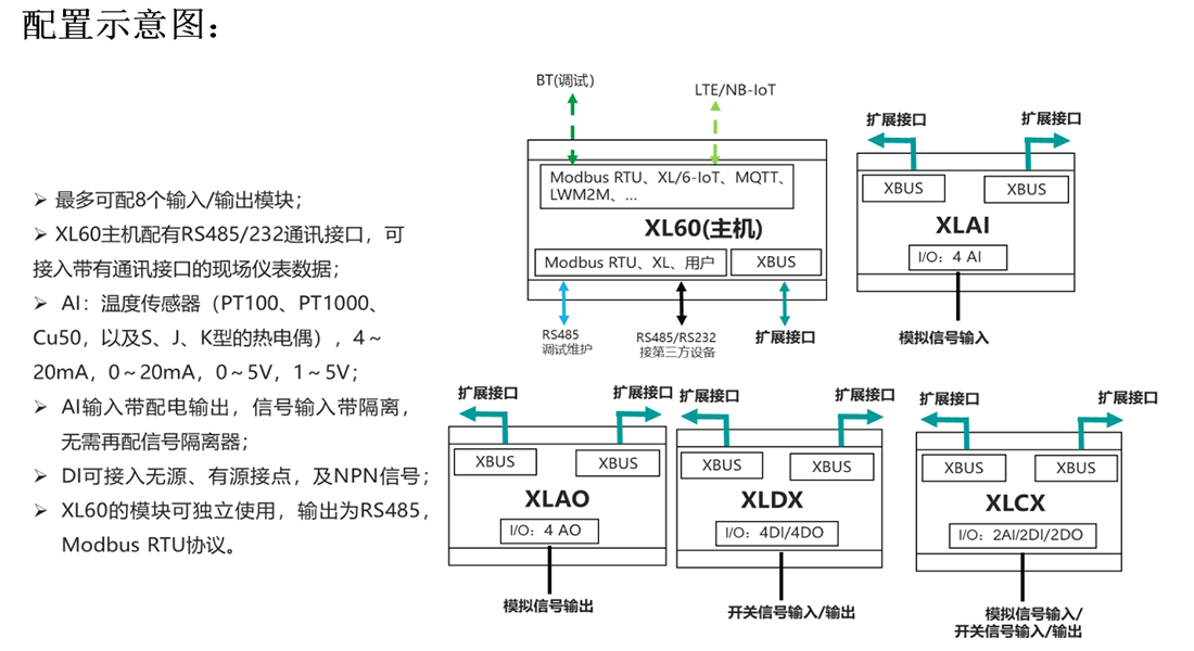 XL60無(wú)線采集裝置為模塊化設(shè)計(jì),一臺(tái)采集裝置,由一個(gè)主機(jī)模塊,和任意不同數(shù)量的輸入、輸出模塊組成。