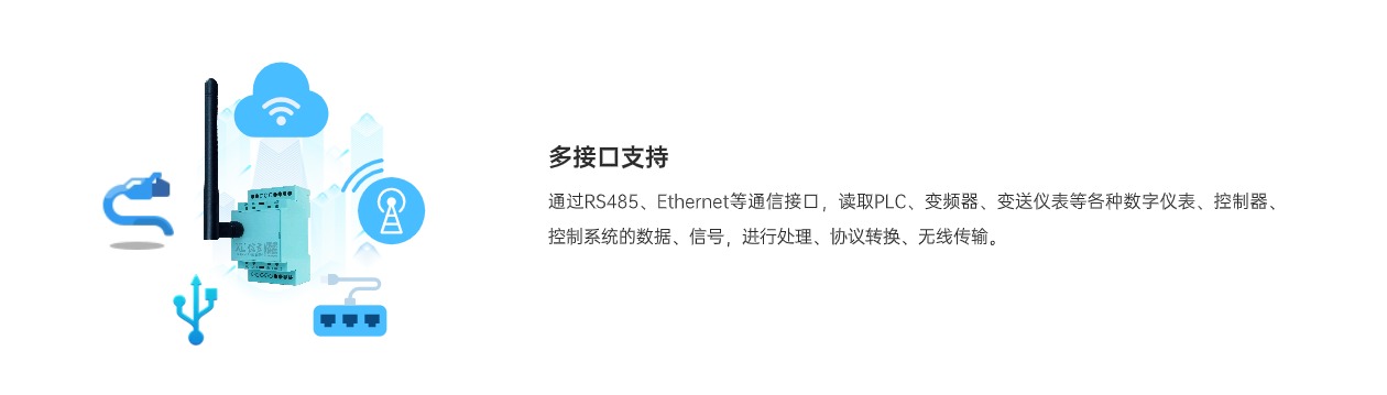 • 工業儀表、控制器聯網:讀取PLC等各類控制器、工控儀表的數據,轉無線通信或聯網,并可同時向多個主站、平臺,發送數據。