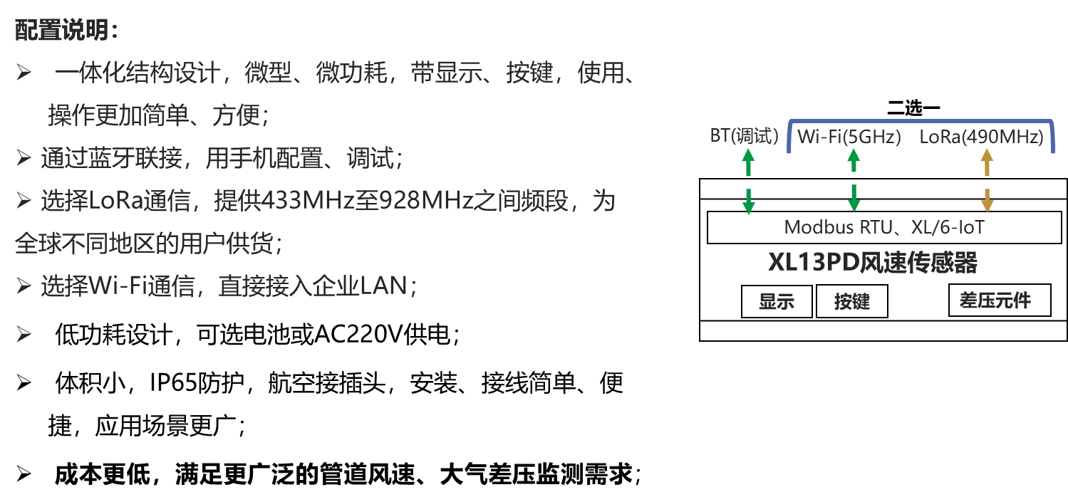 XL13無線風速(差壓)傳感器,用于采集排風管道內風速,潔凈空間、車間,實(試)驗室,等空間的大氣差壓。集傳感元件、信號處理,無線傳輸于一體,按低功耗、電池供電標準設計,體積小,安裝接線簡單、便捷。