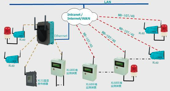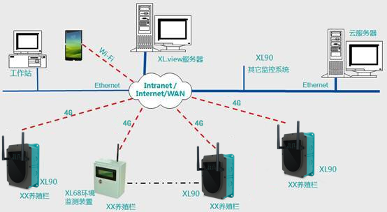 XL68智能環(huán)境監(jiān)測終端(裝置),采集空氣溫濕度、H?S、NH?、O?、CO?等等氣體濃度,光照、差壓等等信號;簡單應(yīng)用中選擇XL51溫濕度傳感器采集空氣溫濕度;XL60無線采集裝置控制養(yǎng)殖欄內(nèi)的參數(shù),起動風(fēng)機(jī)、加熱裝置、濕簾、照明,起動聲光報(bào)警器,采集用水量、用電量、水壓等等用戶關(guān)注的參數(shù)。