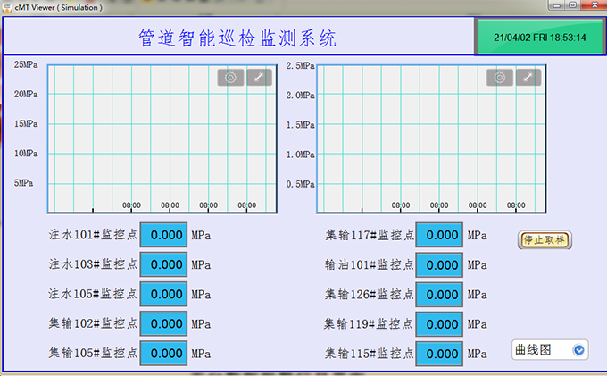 當出現(xiàn)壓力過大時,中控室會發(fā)出聲光報警提醒工作人員,工作人員可通過觸摸屏上的按鈕關(guān)閉或打開閥門,防止原油泄漏。大大降低的安全事故,節(jié)省了人工成本。