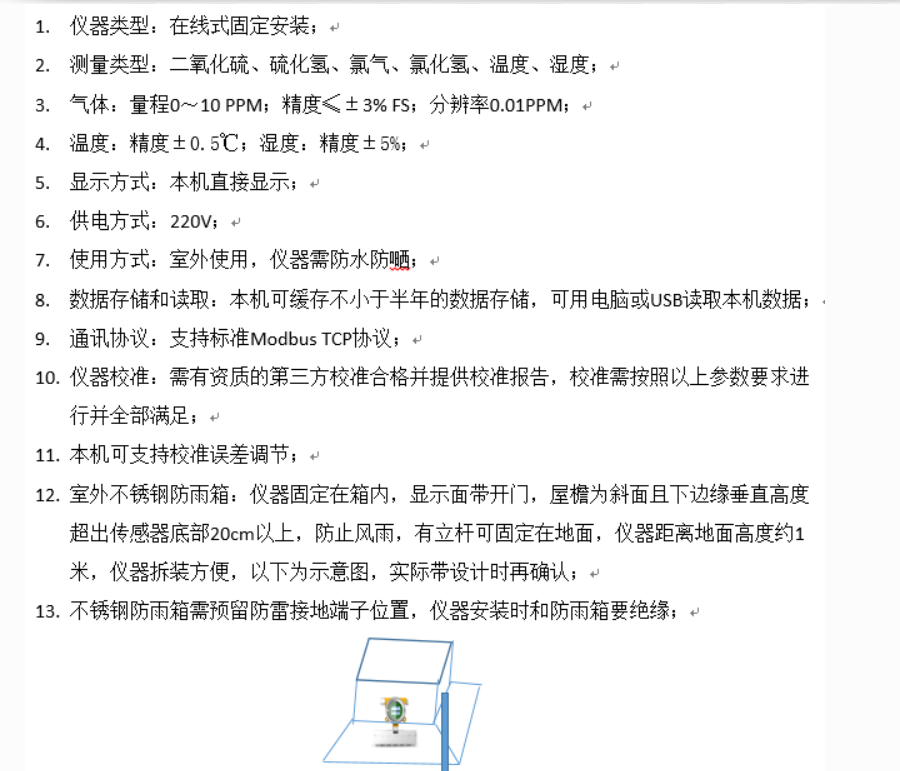 按技術要求,氣體傳感器,二氧化硫,硫化氫,氯氣,氯化氫等技術參數,都達到:量程:0-10ppm,精度:≤±3%F.S.,分辨率:0.01ppm