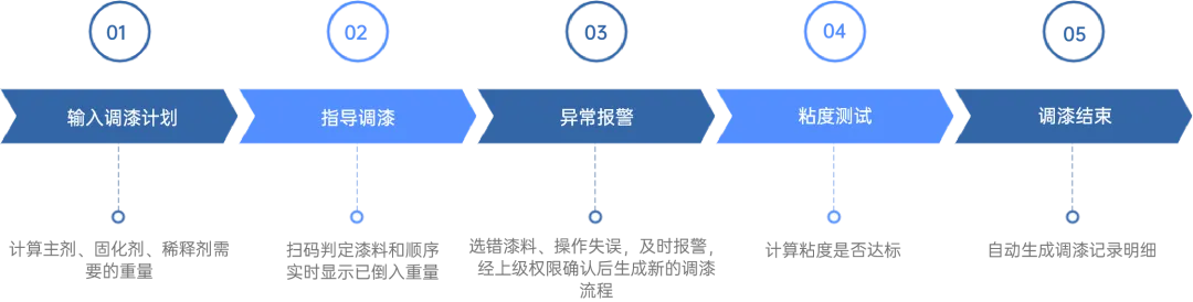 實現調漆過程可追溯,記錄每一步調漆操作、質量、用料等,出現異常能快速定位問題;